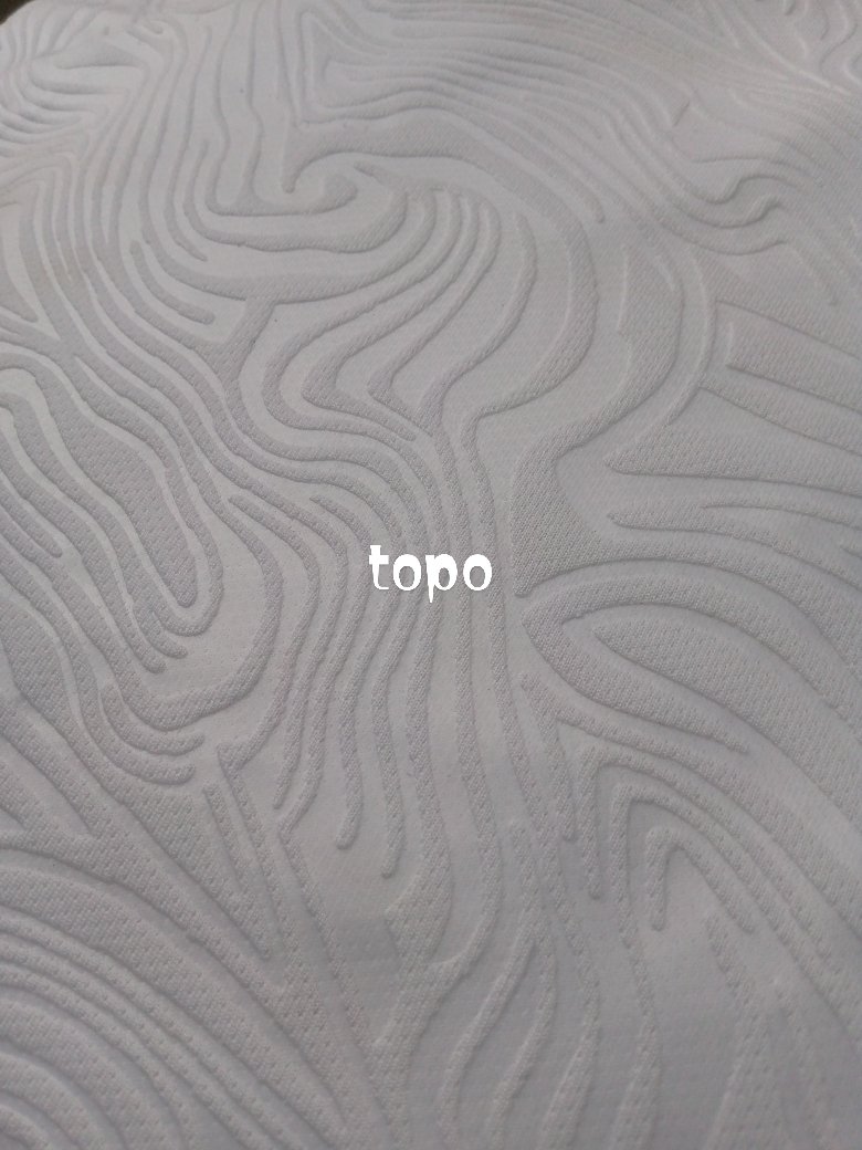 Kain embos topo adalah jenis kain yang memiliki corak timbul dengan pola menyerupai peta atau topografi, yang dihasilkan melalui proses penekanan. Kain ini sering kali terbuat dari bahan drifit yang memiliki keunggulan seperti menyerap keringat, cepat kering, dan terasa adem, sehingga sangat cocok untuk pakaian olahraga, terutama jersey, karena memberikan kesan mewah dan unik